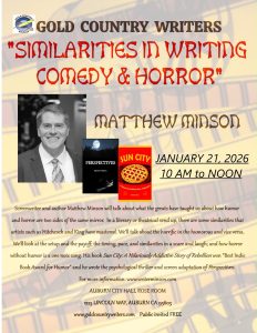Our speaker will be Matthew Minson on “Similarities in Writing Comedy and Horror.”
